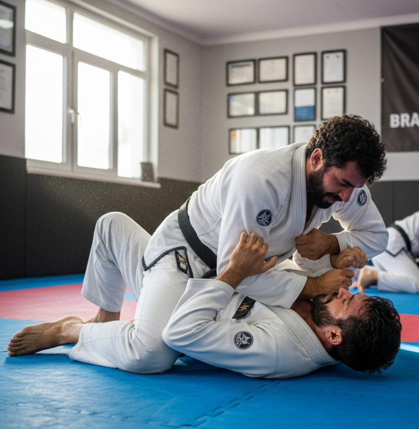 Jiu-Jitsu ermöglicht Menschen, körperlich überlegene Gegner zu kontrollieren. Der Fokus liegt auf der Kontrolle am Boden und darauf, den Gegner über Gelenkhebel und Würgegriffe zum Aufgeben zu zwingen.